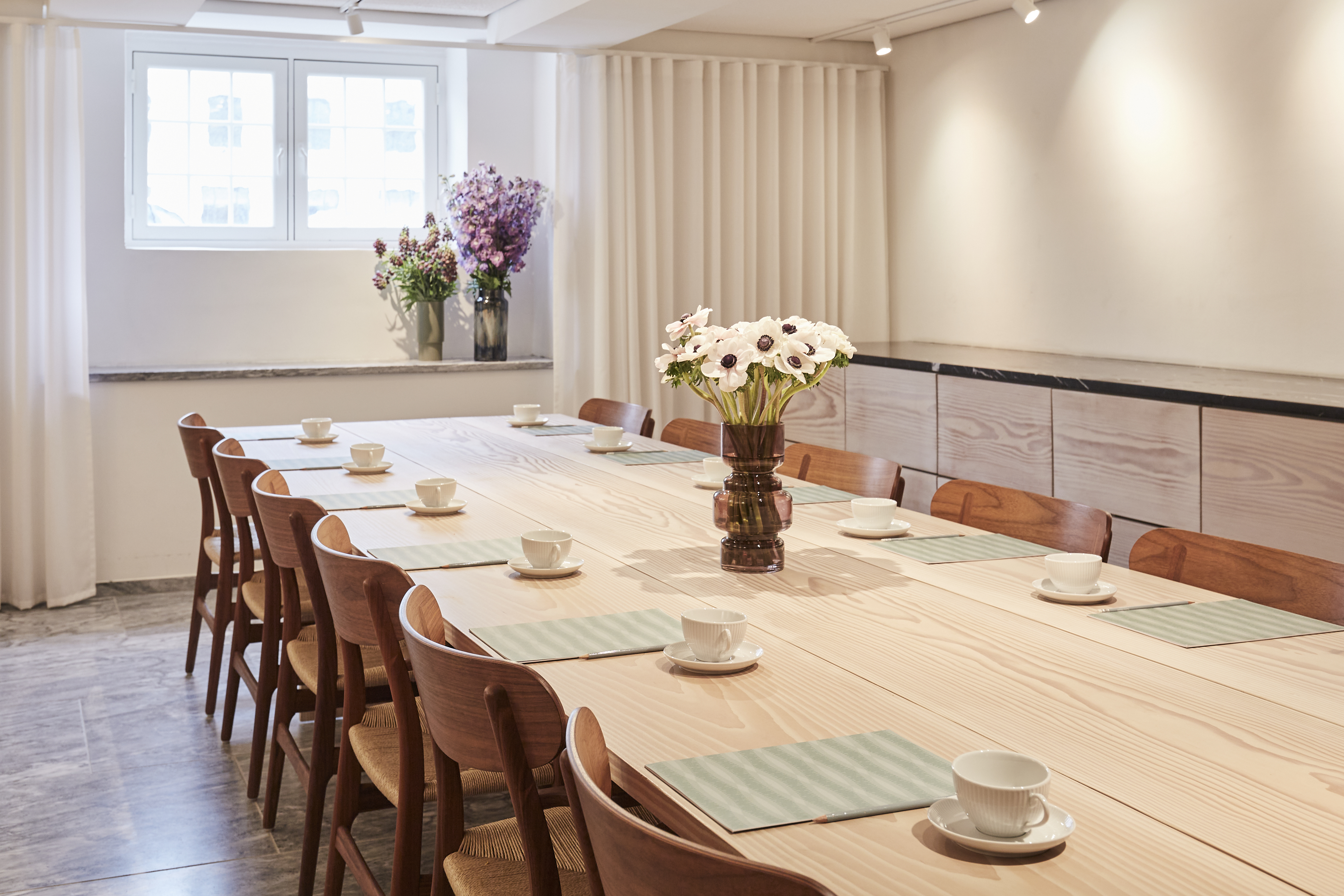 Nobis Hotel Copenhagen tilbyder tre moderne og stilrene mødelokaler til 2-14 gæster i en boardroom opstilling. De er ideelle til mindre møder eller sammenkomster. Mødelokalerne er Indrettet i skandinavisk elegance med et massivt egetræsbord og danske designer stole.